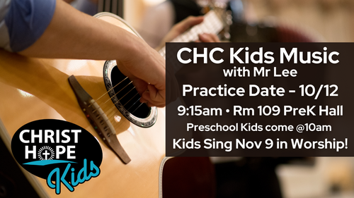 Get ready for a joyful noise! All CHC Kids are invited to sing with Mr. Lee during Sunday School at 9:15 AM, and our Preschool friends can join the fun at 10:00 AM. We’ll be practicing on Oct 12,—all leading up to a big moment…We’ll sing during worship on November 9! Don’t miss this awesome opportunity for your kids to worship, learn, and shine with their voices. It’s going to be a sweet and joyful part of our Sunday mornings!