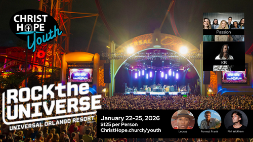 CHC Youth is headed to Rock the Universe at Universal Studios in Orlando! Join us for a weekend of thrilling rides, theme parks, and powerful worship concerts. We’ll be departing Thursday, January 22nd after school and return Sunday afternoon—please note, you’ll need to miss school on Friday.
