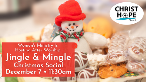 CHC Women's Ministry Team is hosting a Christmas social at 11:30am on Sunday, December 7. Stay after worship to enjoy treats, snacks & conversations at the Jingle & Mingle!
