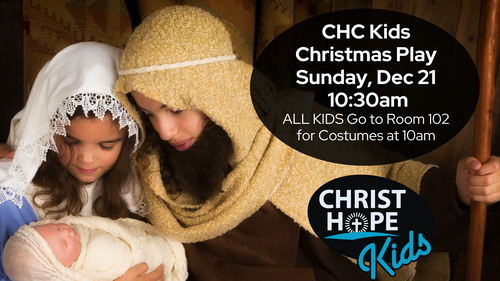 Mark your calendars for a VERY SPECIAL CHRISTmas Play! We invite children and grandchildren of ALL ages to participate in our CHC Kids CHRISTmas Play on Sunday, December 21!