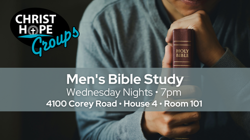 We gather in House 4 - Room 101 (4100 Corey Rd) every Wednesday night at 7:00pm for Bible Study. This laid back format of open & real discussion, Biblical teaching & great fellowship is a place for every man to feel welcomed!