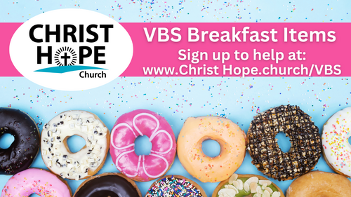 To help our volunteers get fueled up for the day, CHC VBS Team has put together a list of items needed each morning. Please sign up to help provide a breakfast for our volunteers!